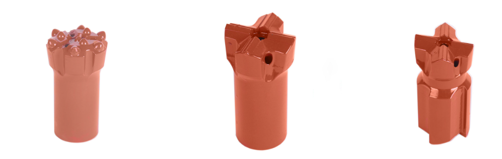 Tapered button bits are typically used for small-hole drilling with hand-held rock drills or light jackhammers. These bits feature a tapered socket that fits into a matching Tapered drill rod, commonly in 7°, 11°, or 12° angles.